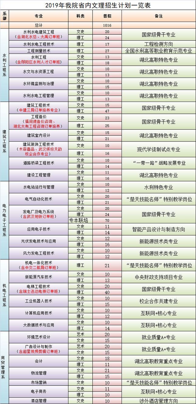 2019年bat365省内招生计划一览表