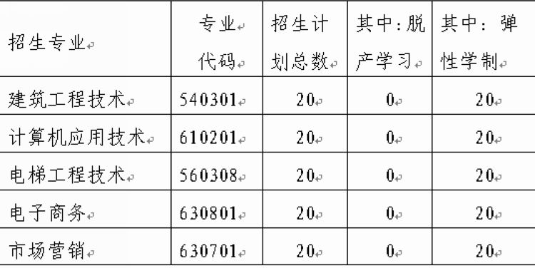 第十一条 2019年学校设置高职扩招招生专业5个,总计划100人,具体情况详见下表。