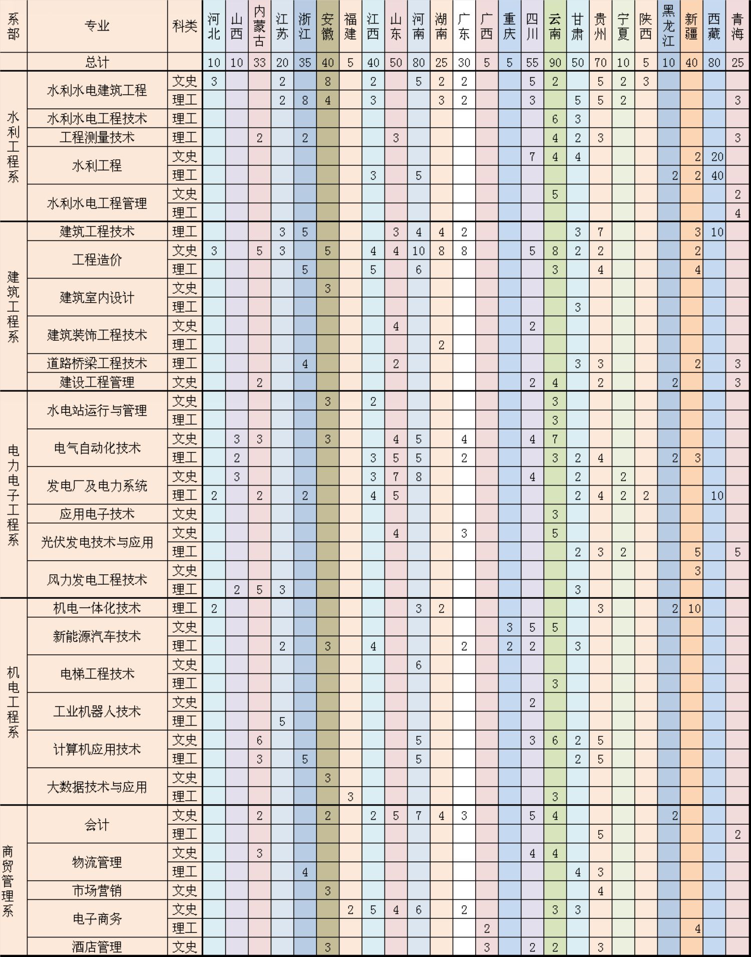 2020年bat365省外招生计划一览表
