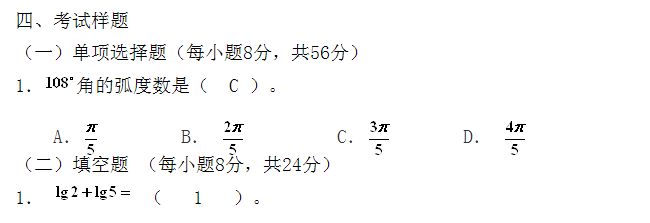 数学部分考试测试考生数学基础知识、基本技能、基本思想和方法,考查考生的数学基本运算能力和运用所学知识分析和解决简单问题的能力,结合高等院校专业培养需要,为高校选拔合格的学生。