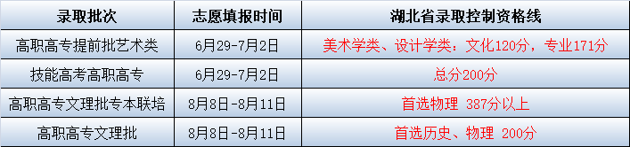 2021年湖北省专科录取控制分数线