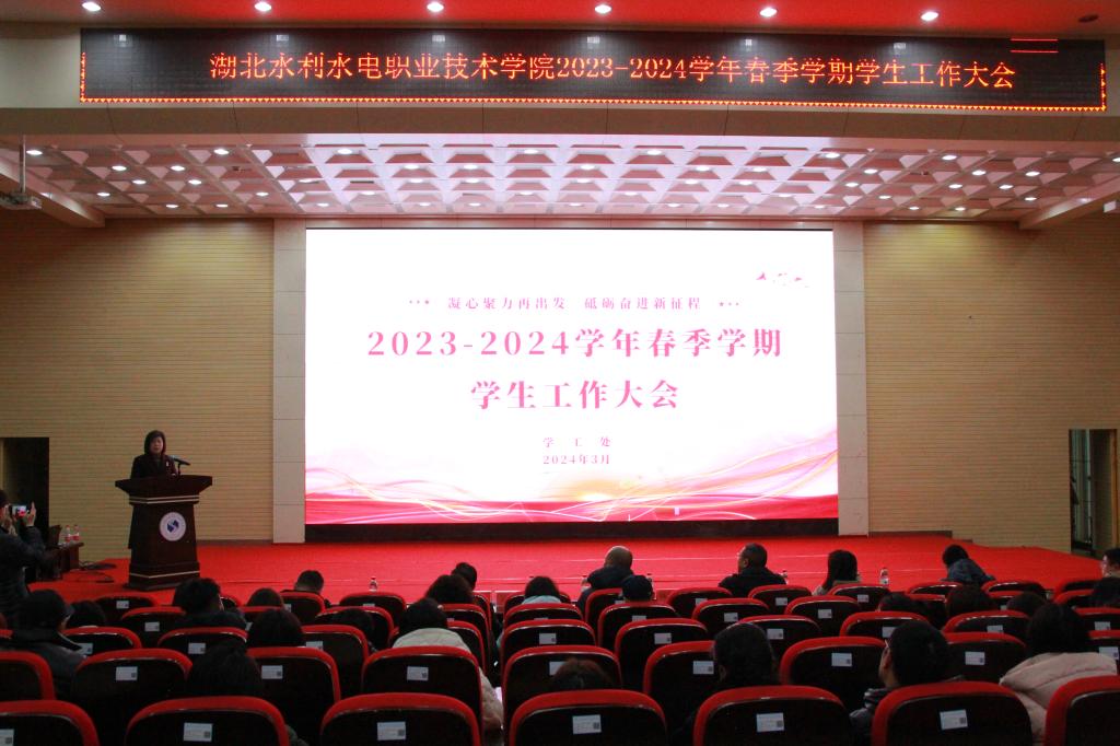 为全面贯彻落实立德树人根本任务,进一步规划新学期工作目标和思路,以实际行动助力学院“双高”建设,3月6日上午,学院在汤校学术报告厅召开2023-2024学年春季学期学生工作大会。学院党委委员、副院长陈鲁莉出席大会并讲话。学工处、团委、各系部学管相关负责人,全体专兼职辅导员及学工处全体人员参加会议。