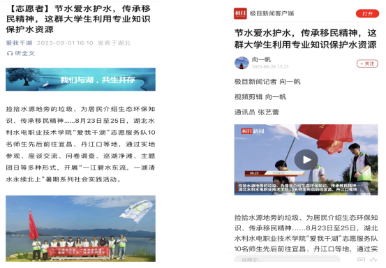 2023年8月23日,学院“爱我千湖”志愿服务队先后前往宜昌、丹江口等地开展“一江碧水东流,一湖清水永续北上”暑期系列社会实践活动。