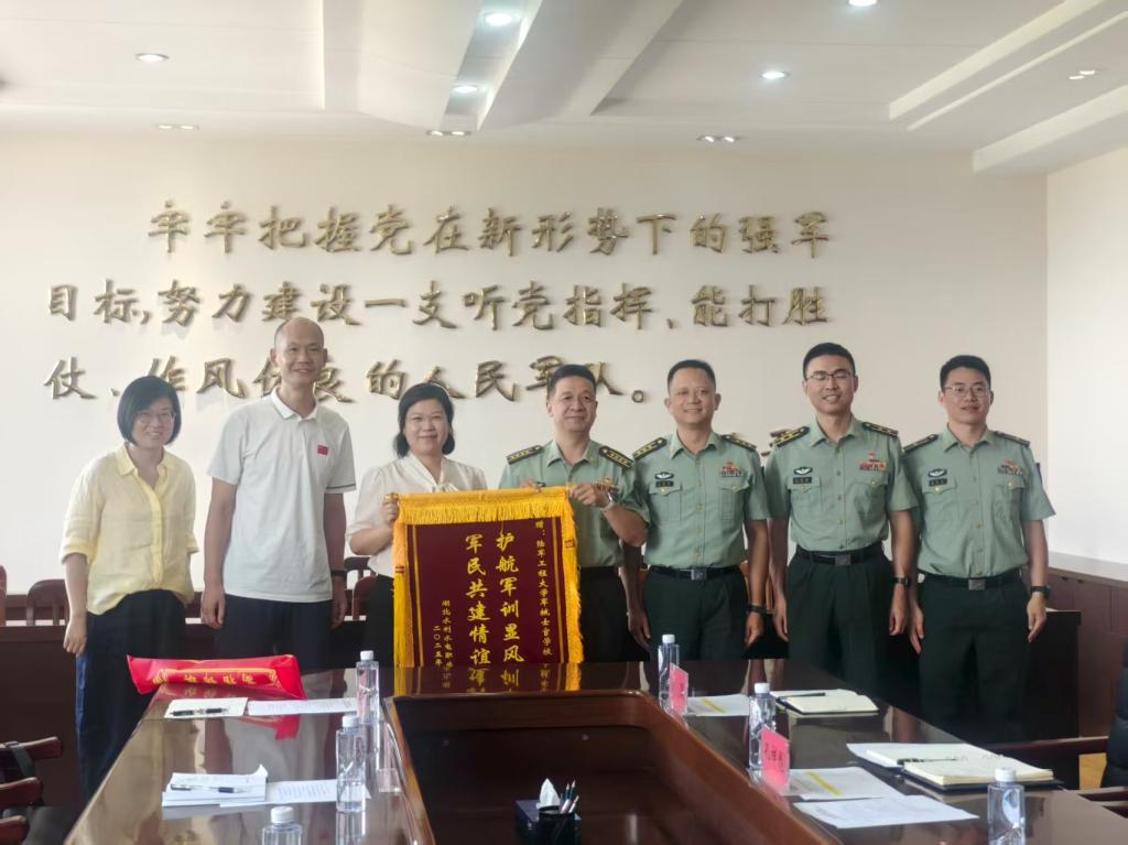 最后,学院向陆军工程大学军械士官学校赠送锦旗,感谢其为去年新生军训付出的辛勤努力。双方期待未来拓展更多领域合作,让校军纽带更紧密,携手在军民融合道路上稳步前行,共谱协同育人新篇章。