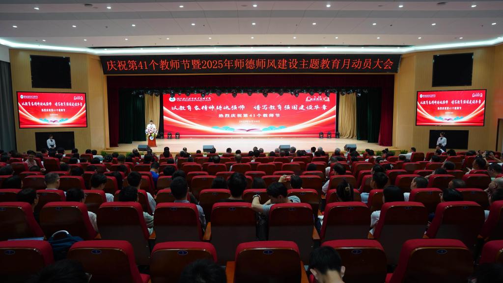 秋兰飘香,杏坛溢彩。9月10日下午,学院在汤逊湖校区大学生活动中心举行庆祝第41个教师节暨2025年师德师风建设主题教育月动员大会。省农村饮水安全保障中心主任熊渤,省水利厅人事处三级调研员马根录,学院党委书记姚祖军出席大会。会议由学院党委副书记、院长张政主持。