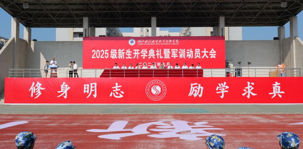 大会在激昂庄重的国歌声中拉开序幕,主席台领导为2025级新生代表佩戴校徽,寄托学院对新生矢志报国、砥砺奋进的殷切期盼。全体师生迎接校旗入场,迎风高扬的不仅是旗帜,更是一代代水院人筚路蓝缕、矢志不渝的精神血脉。迎旗仪式后,全体新生进行了庄严宣誓。