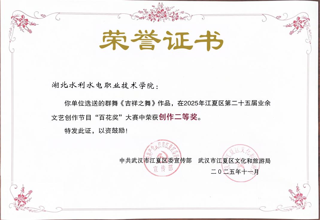 近日,江夏区第二十五届业余文艺创作节目“百花奖”大赛圆满落幕,学院荣获赛事“优秀组织奖”。作为江夏区最有影响力的品牌群众文化活动,本届百花奖汇演节目形式丰富多样,涵盖合唱、戏曲、情景剧、舞蹈等多种艺术类型,共400余项节目参赛。由bat365仓央情协会18名藏族学生参演的作品锅庄舞《吉祥之舞》经过层层打磨,认真排演,最终获得现场评委和观众的肯定,荣获大赛创作二等奖。