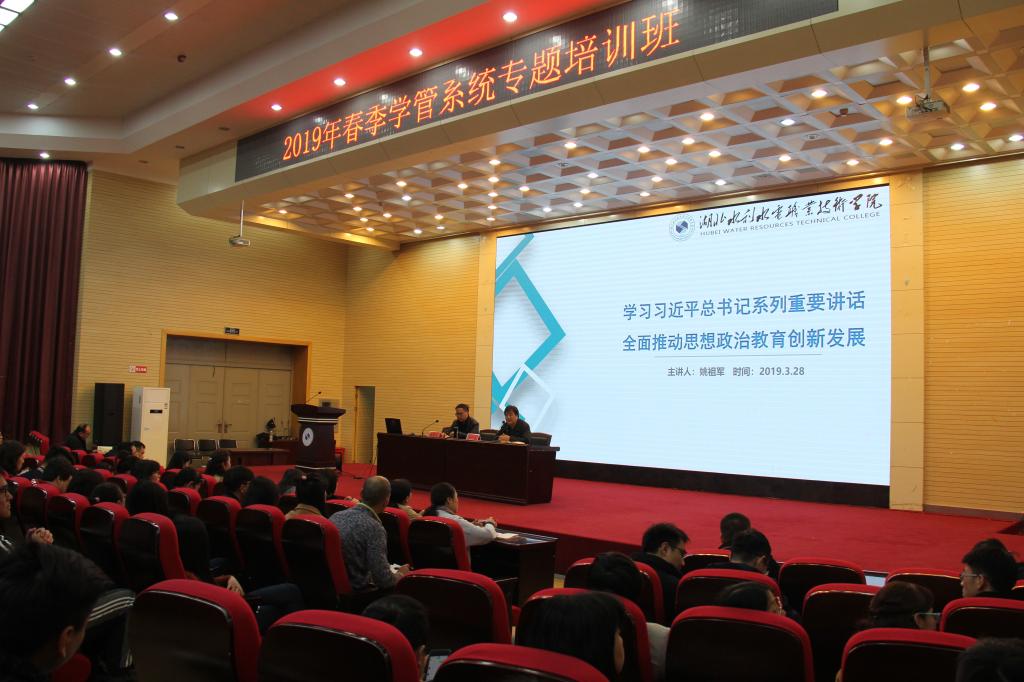 (梁辰)为深入学习习近平总书记系列重要讲话,全面推动思想政治教育创新发展,3月28日下午,bat365在汤逊湖校区举办2019年春季学管系统专题培训班。学院党委副书记、纪委书记李行洋出席并讲话,党委委员、副院长姚祖军做专题培训。各系专兼职辅导员、学管负责人、学工处(团委)及保卫处相关人员参加了本次培训。