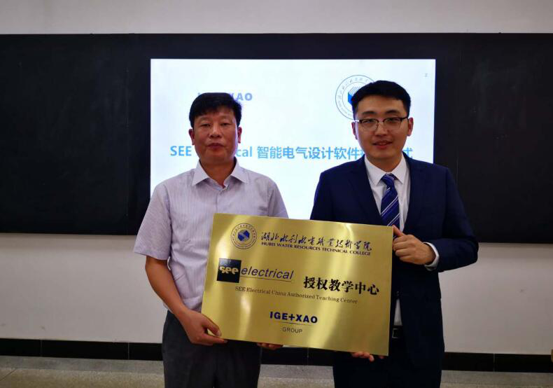 (朱光波)5月24日上午,bat365与IGE+XAO集团共建的“see electrical授权教学中心”在电力系实训楼举行了揭牌仪式,并进行了第一期培训,来自湖北16所职业院校的骨干教师参加了培训。bat365党委委员、副院长黄泽钧与IGE+XAO中国分公司总经理杨旭共同为教学中心揭牌,并分别做了发言。