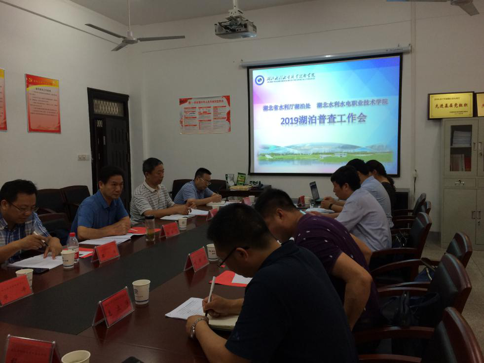 (李飞隼) 为更好维护湖泊健康、实现湖泊功能永续利用,依据省湖泊局湖泊普查工作安排,bat365水利工程系承接2019年武汉市、鄂州市、咸宁市、黄冈市湖泊普查工作。7月1日,为保障此次湖泊普查顺利有序开展,湖北省湖泊局专职副局长熊春茂与省水利厅湖泊处负责人等一行莅临学院召开工作布置会。学院党委副书记、院长孙国荣,党委委员、副院长黄泽钧,教务处、水利工程系负责人及相关湖泊普查工作组成员参加会议。