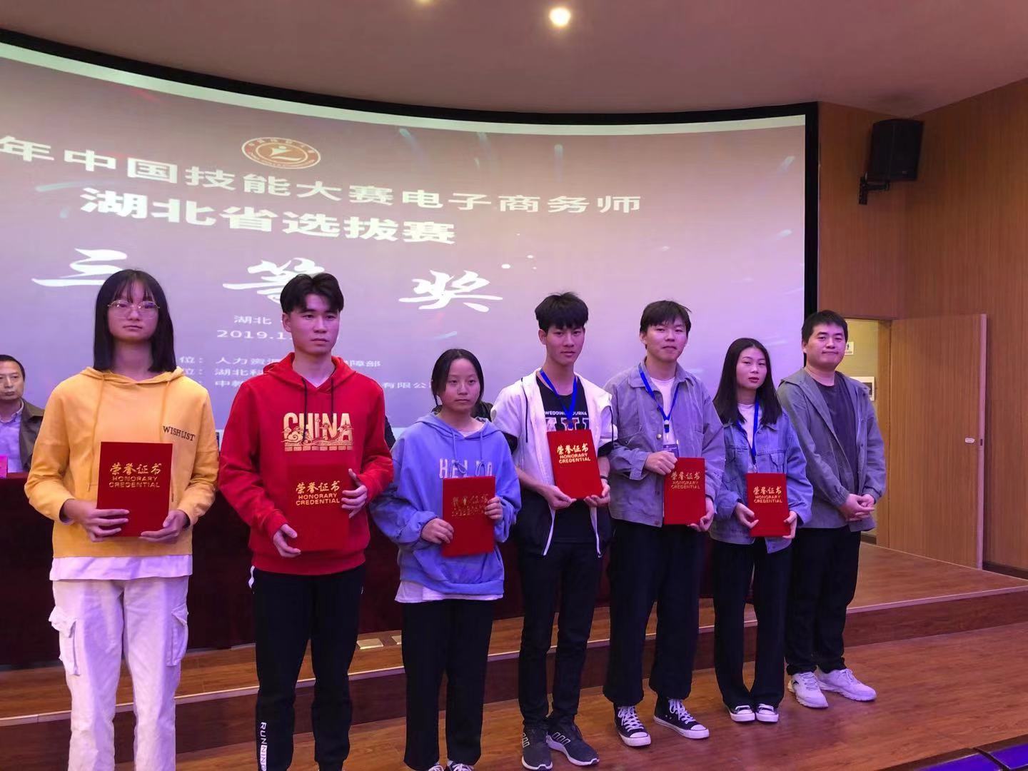 (商贸管理系)11月9日,由人力资源和社会保障部主办、中教畅享(北京)科技有限公司协办的2019年中国技能大赛电子商务师湖北赛区选拔赛在湖北科技职业学院举行。经过激烈比拼,bat365商贸管理系杨扬老师荣获“教师组二等奖”,艾子炎、肖红伟、孙丽芳三名学生获得“学生组三等奖”,吕丝屏、文君两位老师获得“优秀指导教师”。