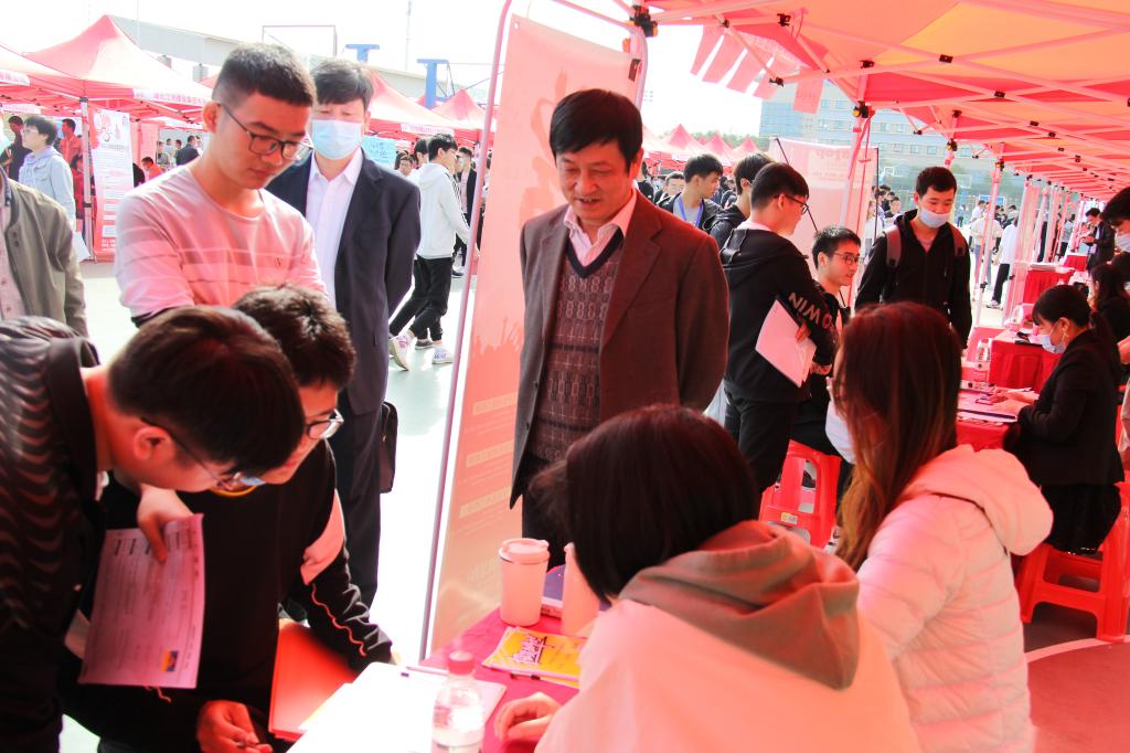 招聘会上,甘齐顺与用人单位和学生亲切交流,详细了解用人单位情况、招聘计划以及学生求职意向,肯定了此次活动的重要意义,并亲自为现场学生指导简历制作和面试技巧。