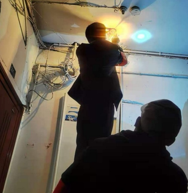 当晚,他们完成楼栋灯线路检修、声控开关更换、灯泡更换21例。