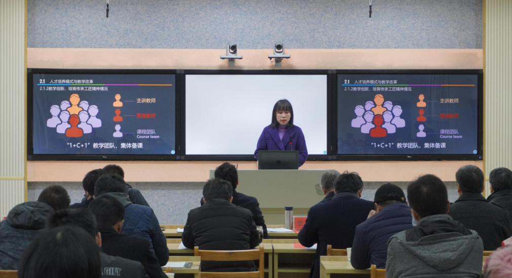 水电站运行与管理专业负责教师梁吟曦汇报了优质专业建设情况。汇报展示了该专业以“爱水利、学水电、兴水业”为专业思政,构建了“一主线、二融合、三层次、四岗位”的人才培养模式,打造了“1+C+1”教学团队,形成了教学过程“五化”,并在实训基地、专业教学资源库、教学创新团队、全国师生技能大赛上取得了一系列国家级成果。