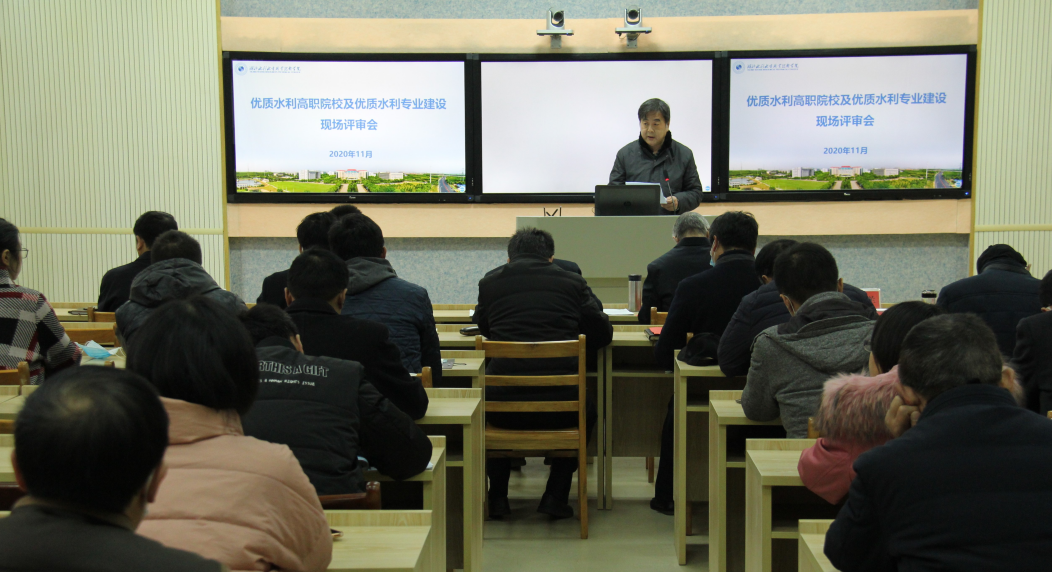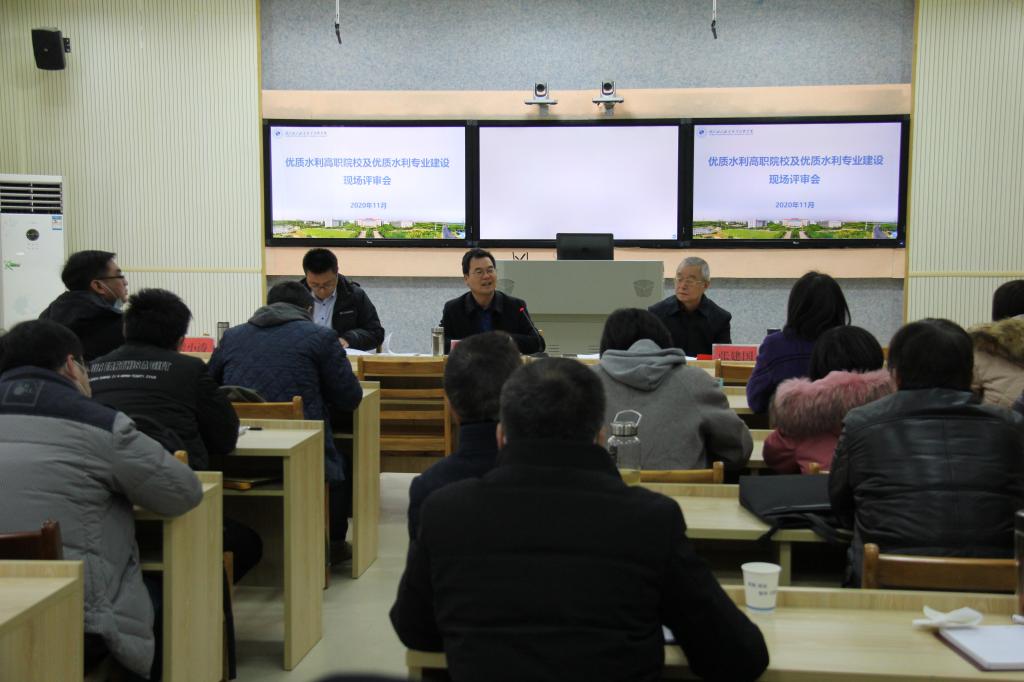 (教务处)11月26日,依据水利部安排,以杨凌职业技术学院水利工程分院院长郝红科教授为组长的专家组一行3人,到bat365开展全国水利优质院校及优质水利专业评审与验收。学院领导班子成员、各系部负责人、教学主任、专业负责人、相关专业教师等参加现场评审会。学院党委委员、电子电力系主任丁官元主持会议。