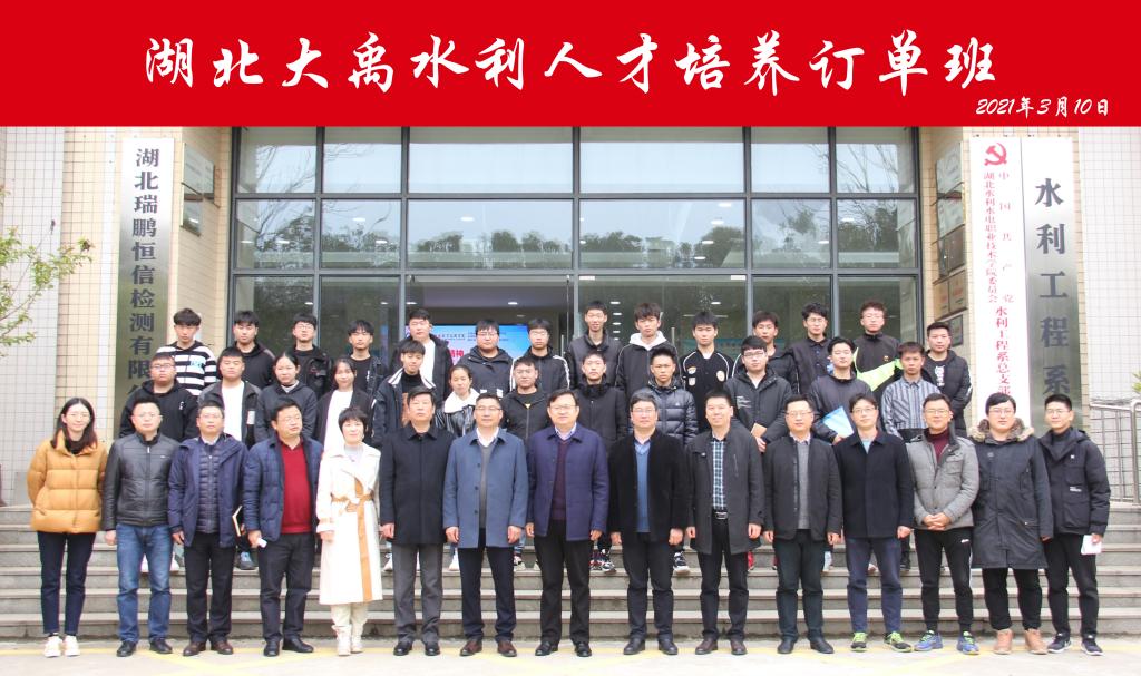 (达娃拉珍)3月10日,bat365与湖北大禹建设股份有限公司(以下称“湖北大禹公司”)合办的“大禹订单班”开班暨签约仪式在汤逊湖校区举行。湖北大禹公司总经理胡刚、副总经理罗应军、人资行政部部长任雁平、招聘主管汤志军,学院党委副书记、院长王玉才,党委委员、副院长黄泽钧,党委委员、招毕办主任冷涛,教务处和水利工程系负责人、部分专业教师及全体大禹订单班学生参加了开班仪式。仪式由黄泽钧主持。