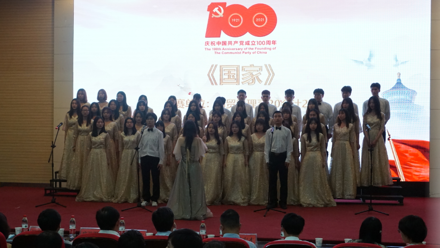 活动在庄严的国歌声中拉开了序幕。王玉才代表学院向全院师生致以诚挚的问候,他回顾了中国共产党成立100年来的历史性成就,指出今年恰逢建党百年重大时刻,也是两个“一百年”历史交汇的关键节点,大家要唱好红歌,唱出对党、对祖国的深情赞歌。他向全院青年提出三点殷切希望:一是坚定理想信念,激发昂扬斗志;二是传承红色精神,汲取榜样力量;三是学习百年党史,担当时代重责。