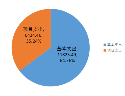 其中:基本支出11825.49万元,占本年支出64.8%;项目支出6434.46万元,占本年支出35.2%;上缴上级支出0万元,占本年支出0%;经营支出0万元,占本年支出0%;对附属单位补助支出0万元,占本年支出0%。