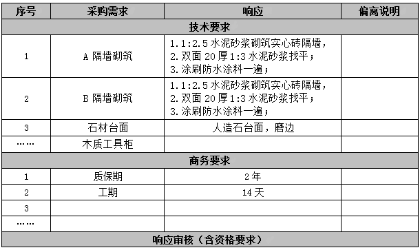 说明:偏离表中技术要求请严格按照附件1的清单逐一列出。