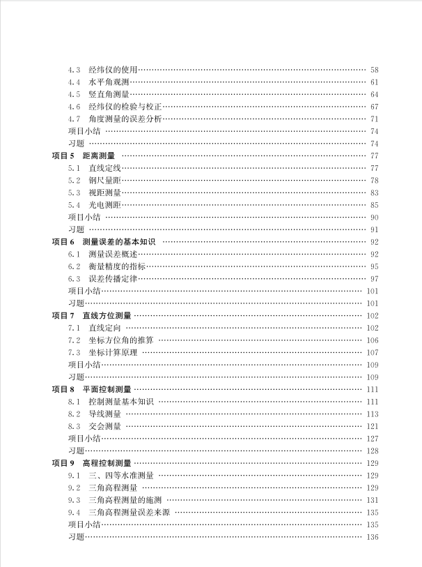 《测量学基础》教材第三版以项目驱动、任务导向体例形式编写,全书分为12个项目,细化为59个工作任务。在第二版的基础上重点进行了以下修改: