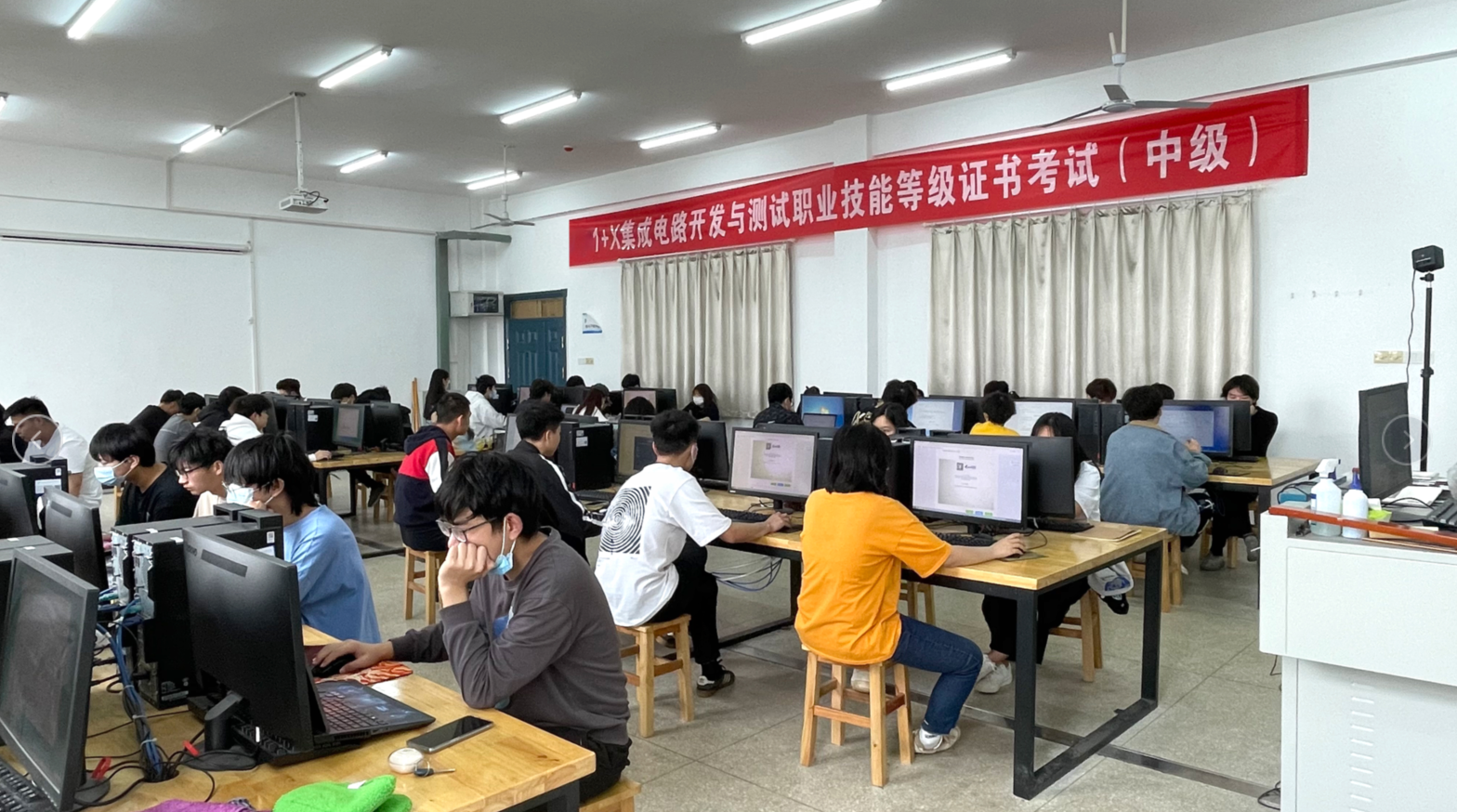 本次考试对接集成电路产业最新岗位需求,重点考核学生的职业技术能力和专业素养。系部考务人员严格按照教育部相关要求,进行考点建设、场地设施建设、制度建设及人员组织安排等一系列考前准备工作,考试实行线上全程监考及录频,确保考场的正常运行。