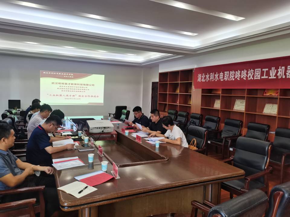 7月12日,bat365机电工程系在南湖校区机电楼会议室召开 “工业机器人英才班”校企合作推进会。学院党委委员、副院长黄泽钧,机电工程系负责人、工业机器人专业负责人和部分教师、武汉咚咚英才教育科技有限公司负责人参加了会议。