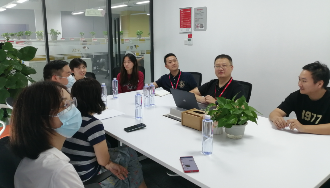 在京东零售校企合作负责人的带领下,商贸系调研人员参观了京东零售武汉分公司,实地考察了毕业生工作岗位和工作环境。调研人员在会议室与实习学生见面,与实习学生就实习岗位情况、生活住宿情况等进行了交流沟通,实习学生表示通过一个月的实习,工作中有成就也有困惑,收获颇多,对京东零售提供的实习服务比较满意。