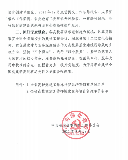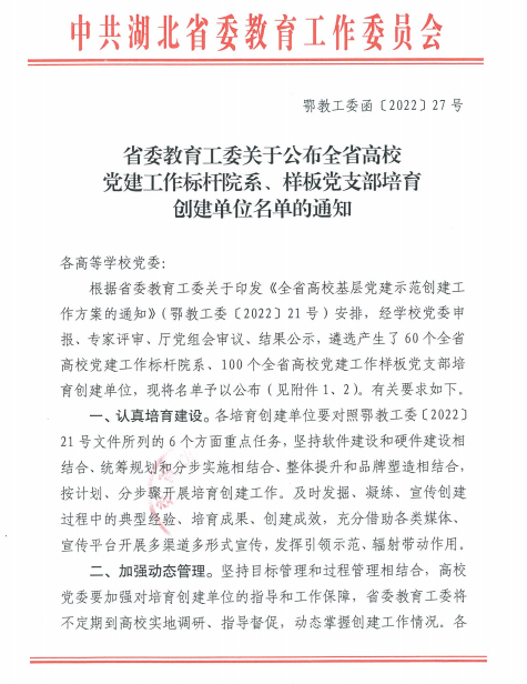 学院党委高度重视党建示范创建工作,将之作为提升学院党建工作高质量创新发展的重要举措。下一步,bat365将以示范创建为契机,认真贯彻落实全国高校党的建设工作会议、湖北省第十二次党代会精神,坚持和加强党对学院的全面领导,坚持社会主义办学方向,落实立德树人根本任务,坚守为党育人、为国育才的初心使命,把促进党建与业务深度融合作为高校基层党建提质增效的主攻方向,以高质量党建引领推动学院各项事业实现更高质量发展。