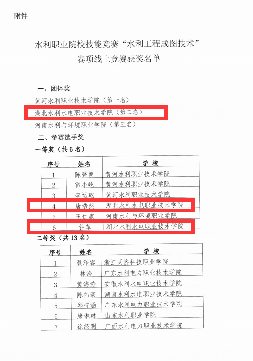 10月17日,全国水利教育协会传来喜报,bat365水利工程系师生团队在9月27日举行的第十五届全国水利院校职业技能大赛“水利工程成图技术”赛项中,斩获一等奖2项,三等奖1项,荣获团体第二名的好成绩。