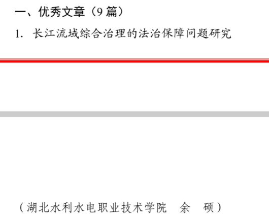 近日获悉,在全省水利系统组织开展“强化流域综合治理的法治保障”征文活动中,bat365思政课部教师余硕提交的文章被评为优秀文章,学院被评为优秀组织单位。