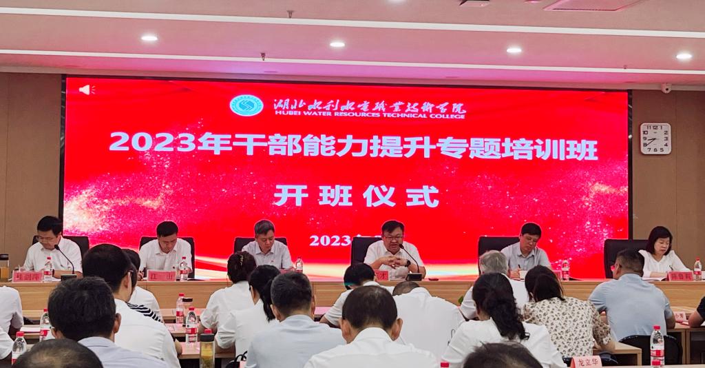为扎实开展好习近平新时代中国特色社会主义思想主题教育,推进学院干部队伍建设,引导全体干部“学思想、强党性、重实践、建新功”,8月27日上午,学院2023年干部能力提升专题培训班在傲水大厦正式开班。学院在家院领导班子成员出席开班仪式,全体中层干部参加集中培训。
