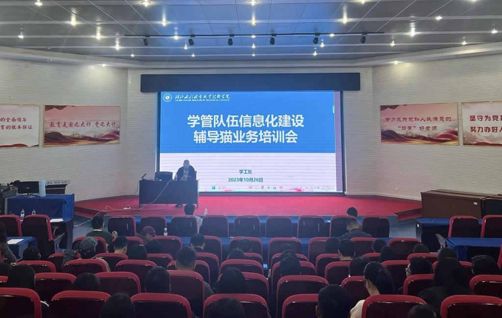 为推动学院学管队伍信息化发展,助力学院“双高”建设,打造学生日常管理一体化平台,10月26日上午,学工处在南湖校区报告厅成功举办学管队伍信息化建设辅导猫业务培训会。学工处负责人及干事,各系学管书记、主任,金智教育工作人员及全体专兼职辅导员参加会议。