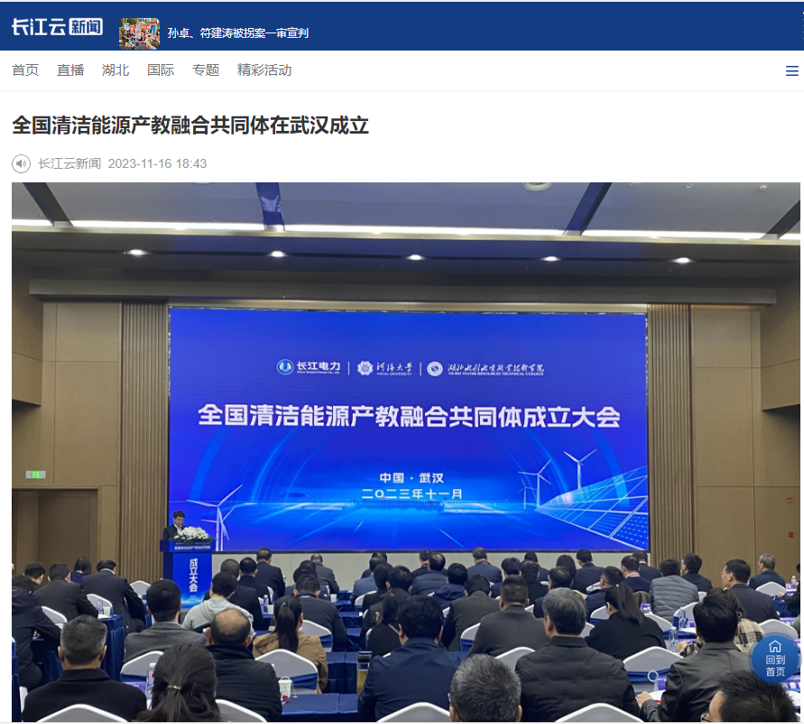 11月16日,长江云新闻以《全国清洁能源产教融合共同体在武汉成立》为题,对bat365和相关单位牵头成立全国清洁能源产教融合共同体进行报道。