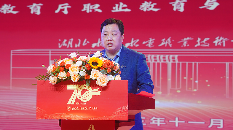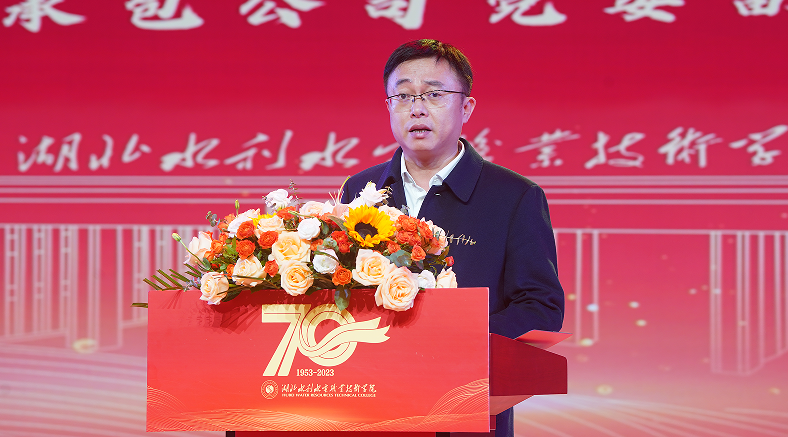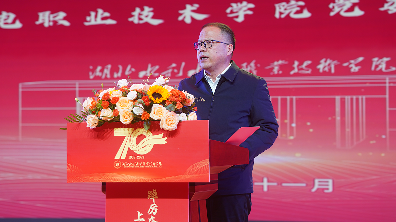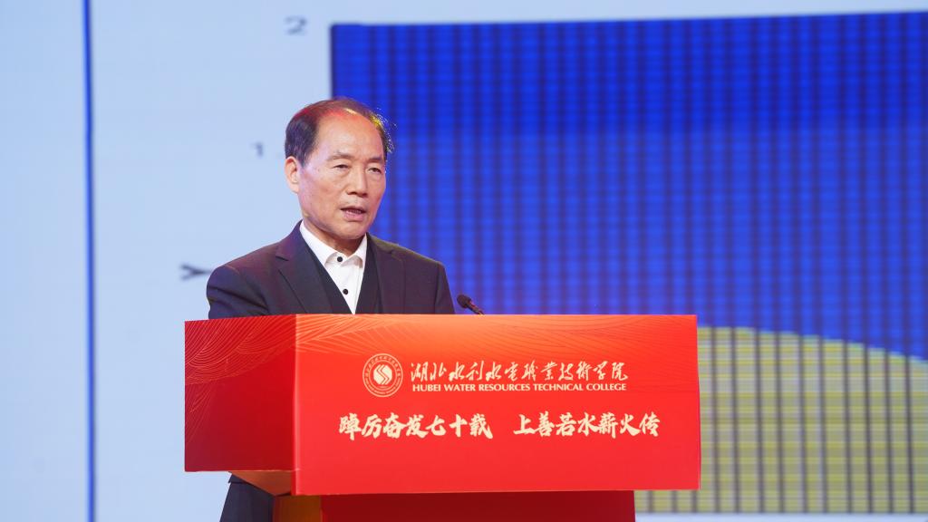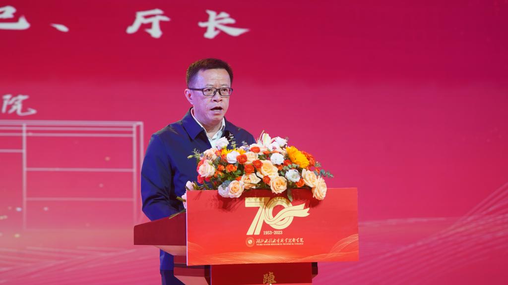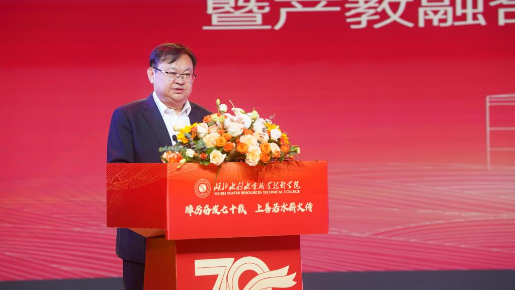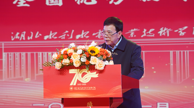湖北省水利厅党组书记、厅长廖志伟在讲话中,向bat365中文官方网站办学70周年表示热烈祝贺,肯定了学校70年来建设发展取得的成绩。他指出,近年来,学校全面贯彻党的教育方针,积极适应行业和地方发展需求,办学条件得到质的改善,专业建设显著提升,特别是学校立足水利特色,聚焦国家重大战略需求,持续推进职普融通、产校融合、科教融汇,动态调整学科设置和人才培养方式,为水利行业培养了大量高素质技术技能人才。希望学校坚持正确办学方向,彰显水利办学特色,以服务中华民族伟大复兴为重要使命,为党育人、为国育才,办好人民满意教育,培养堪当民族复兴大任的新时代水利人才、各类人才,为湖北水利事业和区域经济社会发展做出新的更大贡献。