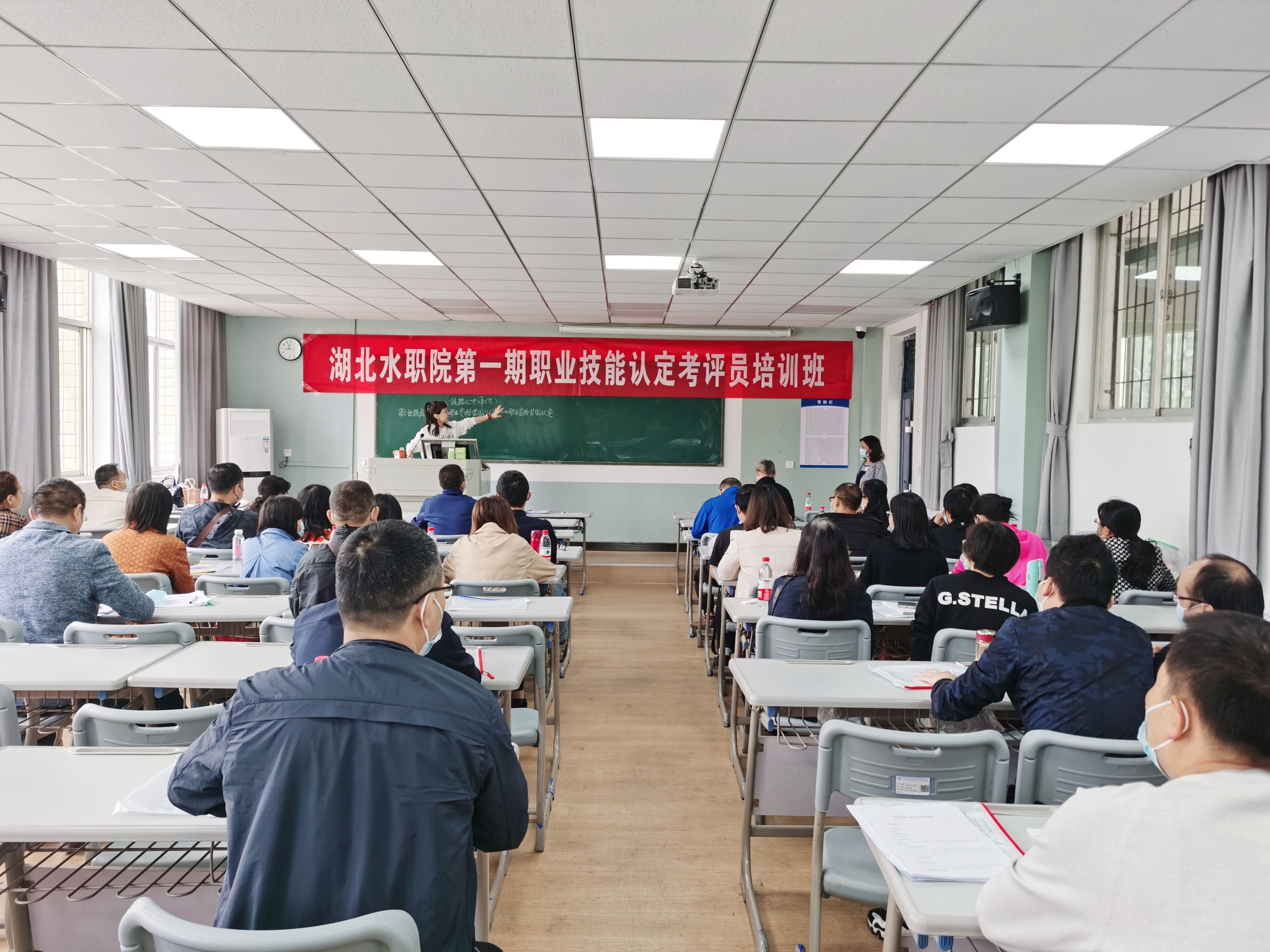 (厅人才服务中心)2021年,学院被省人社厅批准为“职业技能等级认定社会培训评价机构”,可对砌筑工、电工、汽车维修工三个工种开展职业技能等级认定。经省人社厅职业技能鉴定指导中心批准,在学院领导的大力支持下,5月15日,bat365举办了第一期职业技能等级认定考评员资格培训班。47名专业老师在南湖校区参加了bat365第一期“职业技能等级认定考评员培训”线下课程的学习及考核。