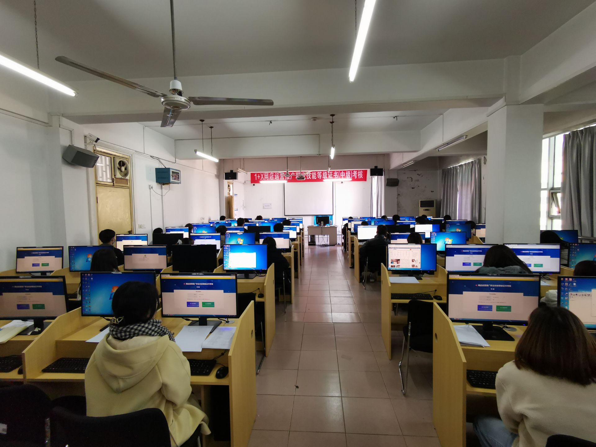 (商贸管理系)12月17日,2021年“1+X”网店运营推广技能等级证书在bat365南湖校区开考。此次考试由学院商贸管理系负责组织实施,北京鸿科经纬有限公司提供技术支持,本次考试一共有38名学生参考,考试采用机考形式进行,考场秩序井然有序,全程录像监控。