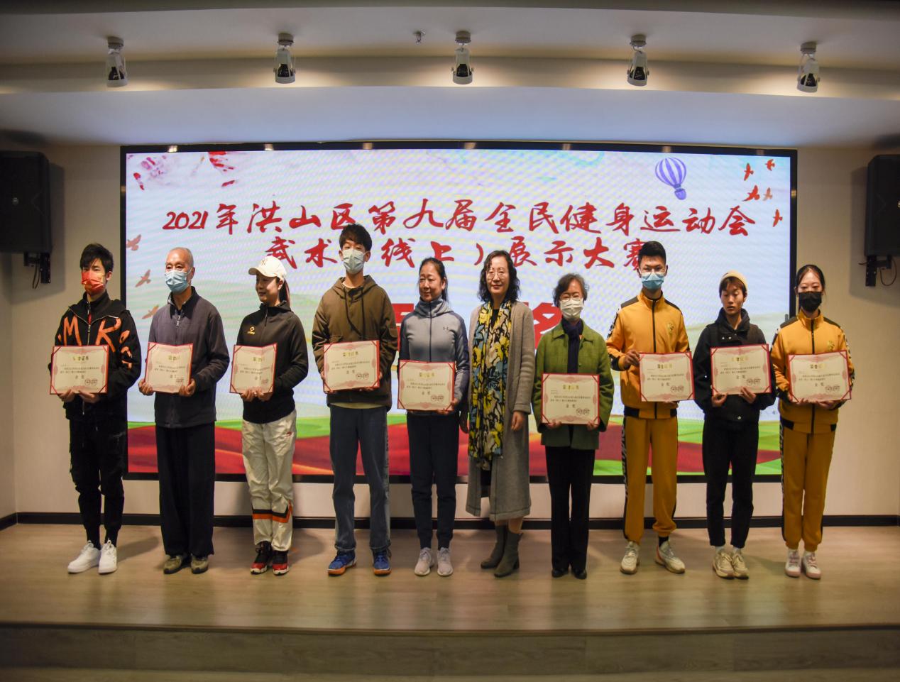 (基础课部)12月4日,洪山区第九届全民健身运动会武术(线上)展示大赛在华润置地公馆养乃世家会议厅举办颁奖仪式,bat365选送的“武术操”在此次展示大赛中喜获金奖,并由组委会授予“优秀组织奖”。
