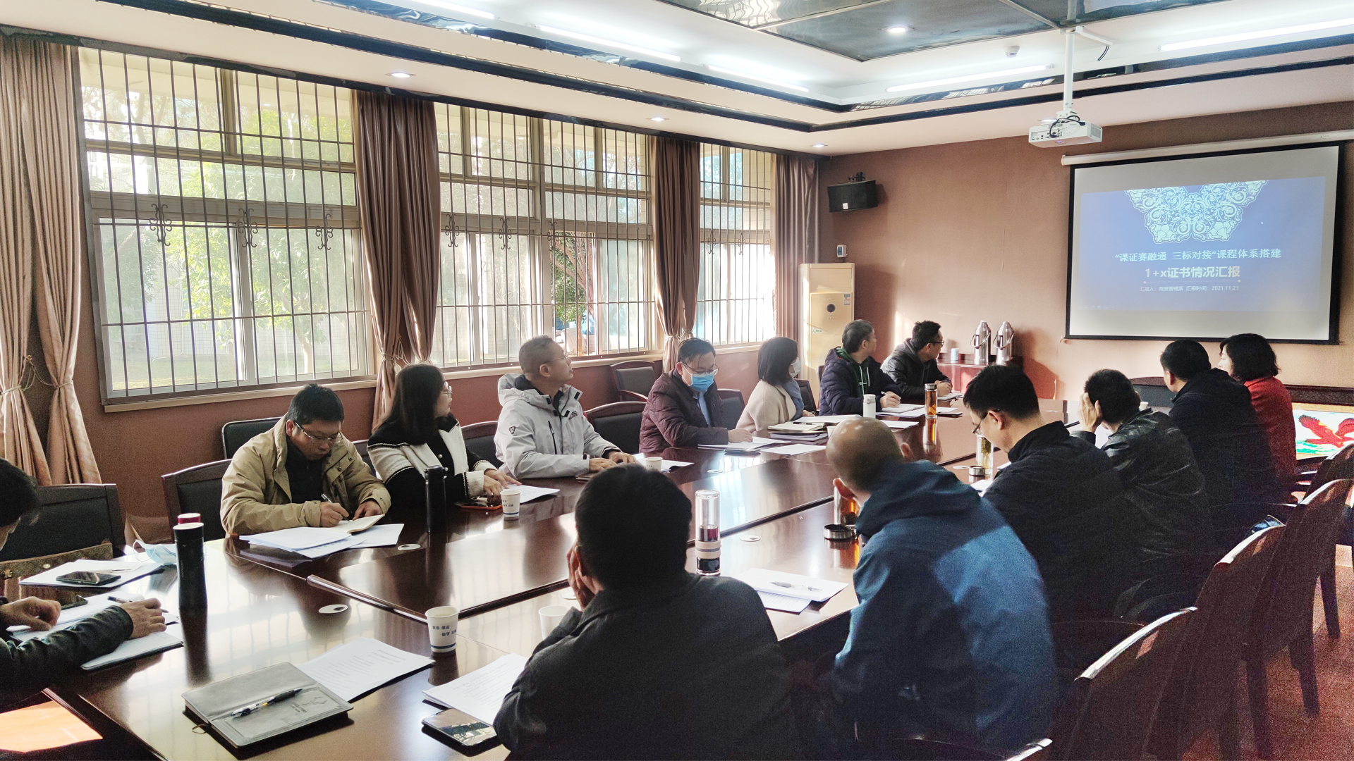 会上,各系主任分别汇报了1+X证书制度试点工作的进展情况、存在的主要问题及相关建议。教务处相关负责人汇报了1+X证书制度试点工作内涵、学院1+X证书制度试点工作总体情况、主要工作内容及措施、主要存在的问题和下一阶段工作安排。与会人员分别就1+X证书选择、费用安排及使用、实训及培训设备优化购置、师生培训、学生证书考核、标准及教材编制等方面进行了讨论。陈鲁莉指出要结合1+X证书制度试点工作相关要求,进一步加强教师培训、教师考核,强化兼职教师队伍建设管理,建立健全教师专项培训工作机制。丁官元指出要继续加强1+X证书制度试点工作,搭建好平台,为教师实践教学能力提升、新形态教材开发、教法改革创新提供支撑,在推进1+X证书制度试点工作中要不断学习政策、理论,不断探索和完善证书试点工作机制。