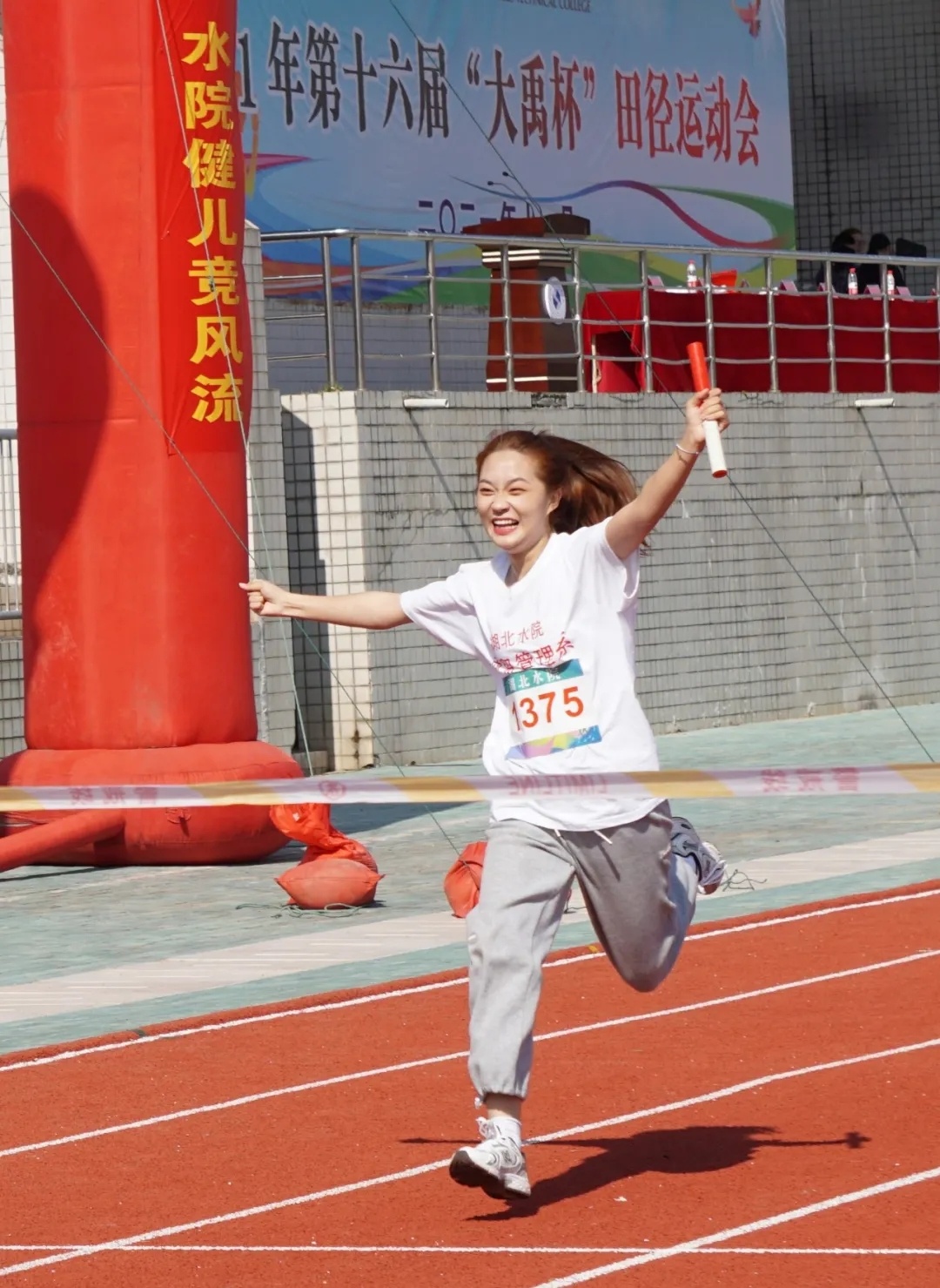 经过两天的激烈角逐,共产生男女个人冠军17个,商贸管理系荣获团体总分第一名,夺得本届比赛大禹杯,水利工程系和机电工程系分获团体总分亚军和季军,电力电子工程系和建筑工程系获得体育道德风尚奖,商贸管理系21会计3、4班等10个班级荣获优秀组织奖,水利工程系19水工2班姚思成同学在跳高比赛中以1.75米的成绩打破此前保持的1.68米赛事记录,创造了bat365运动会一项新的记录。