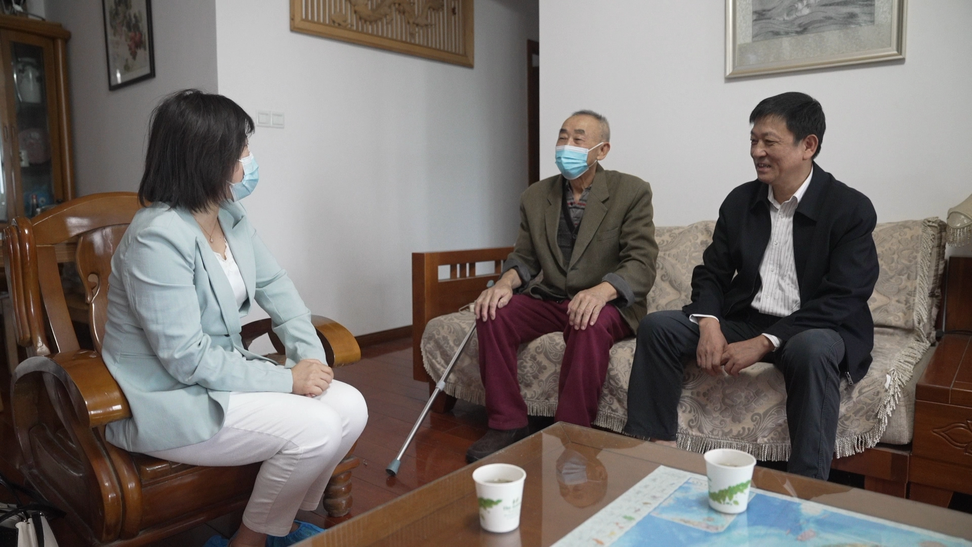 在老职工陈永忠的家中,甘齐顺与陈永忠同志促膝长谈,面对面了解老同志的生活情况和健康状况,倾听老同志心声和意见建议,希望他保重身体、安享晚年。