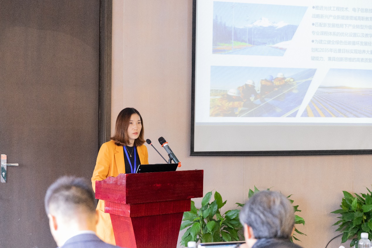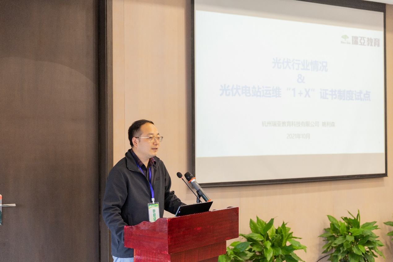 浙江瑞亚能源科技有限公司副总经理姚利森做了《光伏行业及光伏电站运维1+X证书制度试点》的专题报告,大赛事业部韦朝芬经理做了光伏电站工程的设计与实施技能大赛经验报告。北京理工出版社副社长刘铁与参会老师针对国家级新形态教材的开发进行了深入的交流。