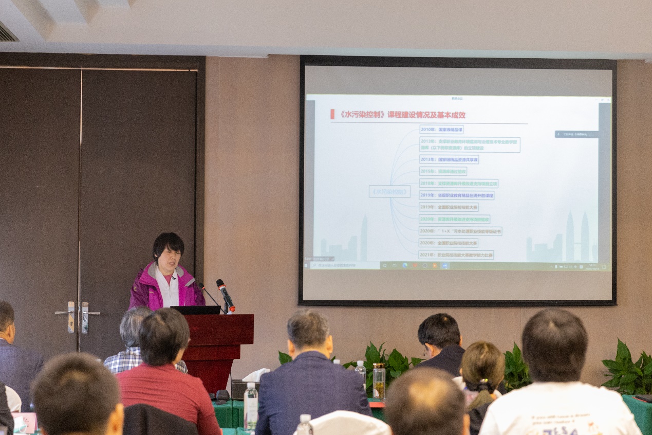 河北工业职业技术大学副教授张素青分享了国家级精品课程《水污染控制》课程建设的实践经验,在岗课赛证融合新理念的基础上,通过水处理技能大赛技能点和污水处理职业等级证书考核点进行课程的重构,在课程建设方面提供了宝贵的经验。