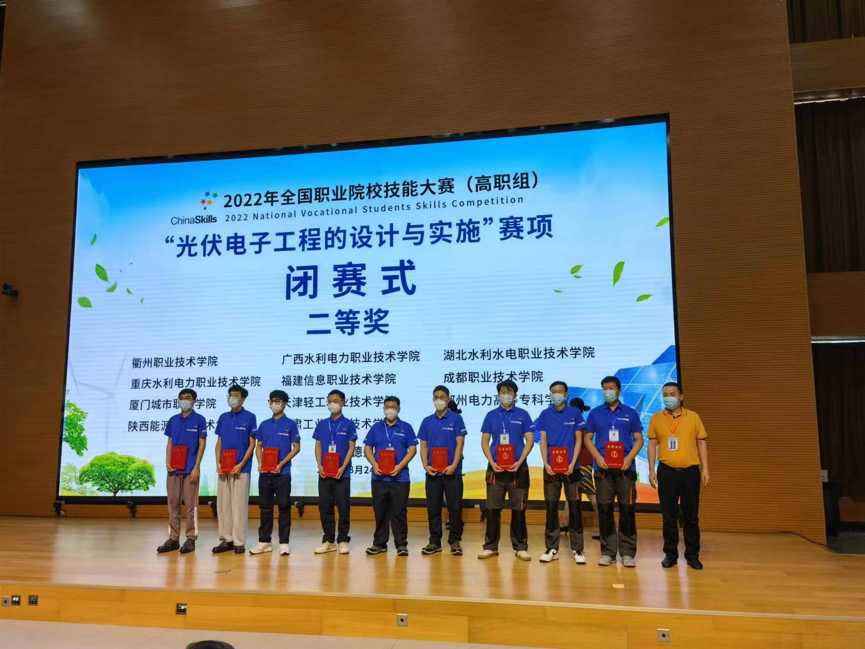 (邓其力 冯伦)8月21日至8月24日,2022年全国职业院校技能大赛(高职组)“光伏电子工程的设计与实施”赛项在山东德州举行。bat365由朱光波、冯伦、邓其力老师指导,张凡运、李世杰、李运丰同学组成的参赛团队在该赛项中挺进全国前十,荣获二等奖的好成绩。