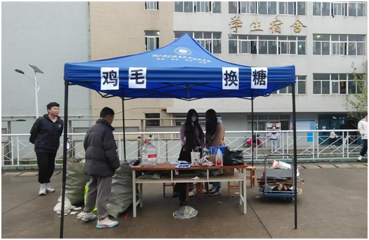 为增强bat365学子环保意识,创建文明美丽校园,电力电子工程系团委于4月10日至4月16日在汤逊湖校区男女平台举办了首届“鸡毛换糖”公益活动,本次活动以“‘鸡毛换糖’新玩法,垃圾也能换宝贝!”为主题,激励青年学子积极践行低碳生活,提高环保意识。同学们通过整理纸箱、废旧书本、塑料瓶等可回收物品转换为积分,再用积分兑换奖品参加活动。