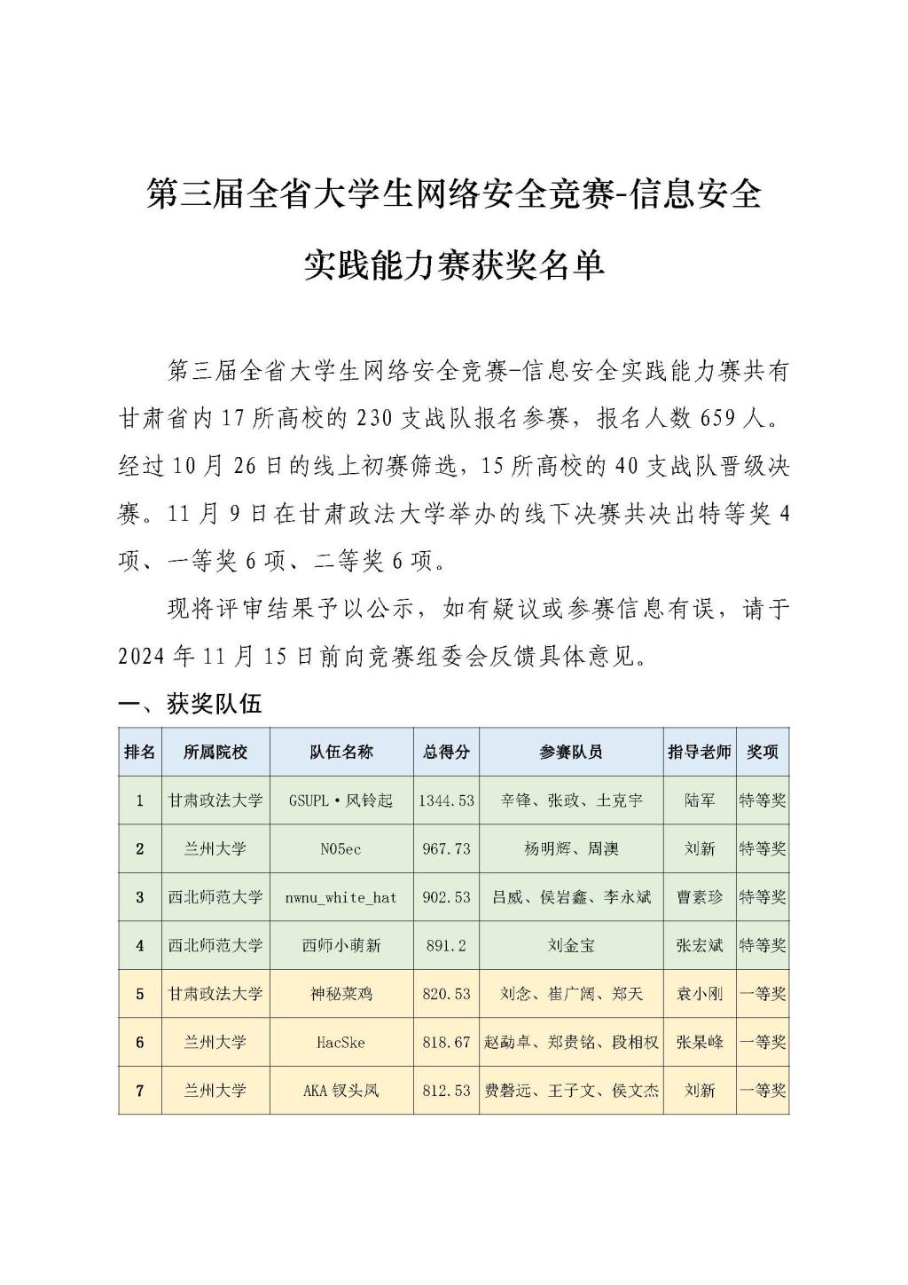 澳门信誉最好十大平台师生在第三届全省大学生网络安全竞赛-信息安全实践能力赛获奖
