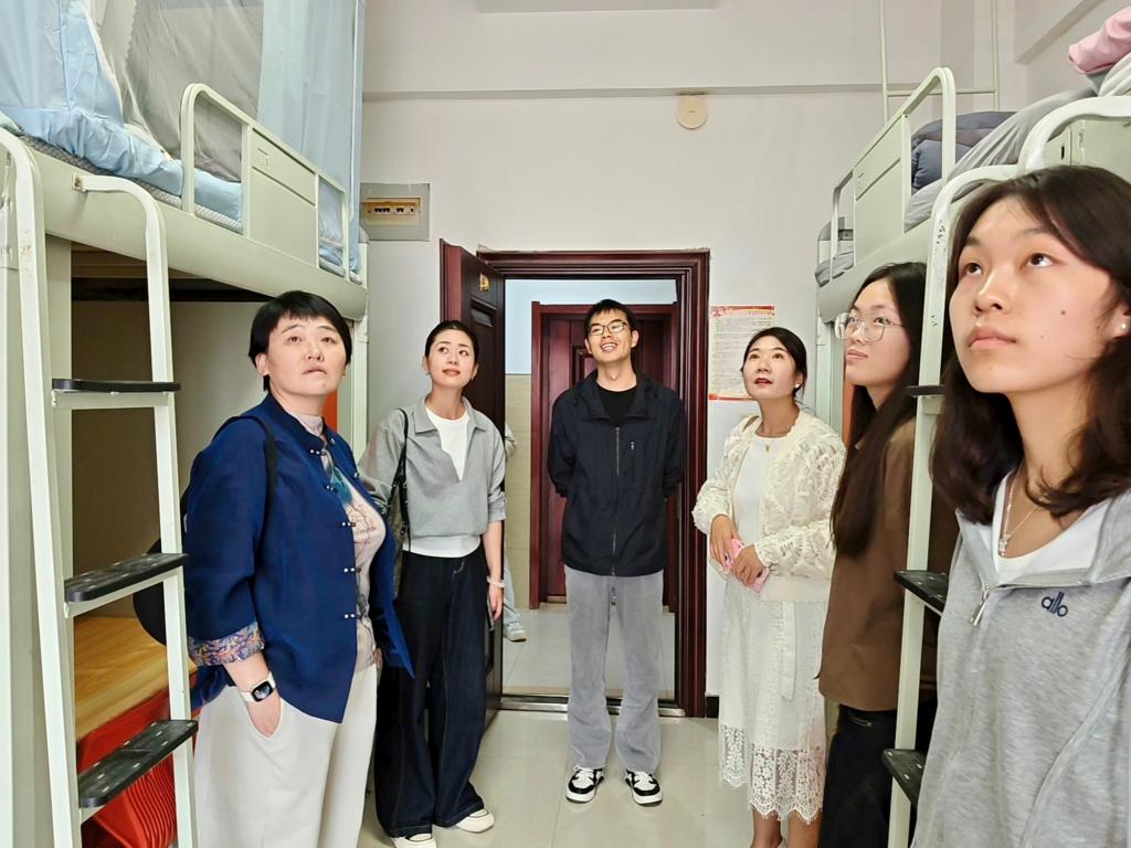 走访过程中,学院领导与辅导员轻声敲门、亲切问候,与新生及家长进行面对面交流,细致了解同学们的入住体验和生活需求,从宿舍采光、用水用电,到行李整理、网络畅通等细节一一关切询问。